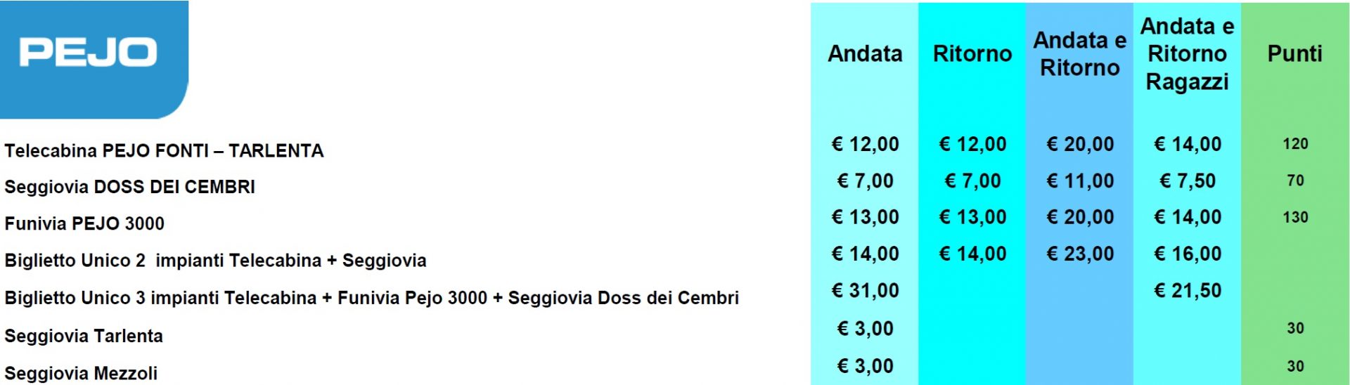 Tessera non Sciatori da 3 a 7 giorni valida su Telecabina – Funivia – Seggiovia Doss dei Cembri 50% di sconto rispetto alla Skipass Sciatore Adulto (tariffa unica).
